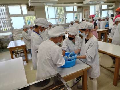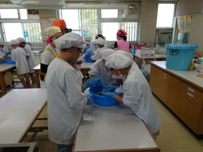 今日も,糀谷雨風さんに来ていただき,みそづくりを教えていただきました。このような,良き伝統を受け継いでいきたいものです。このみそを使って,みそ汁をつくるのが楽しみですね。