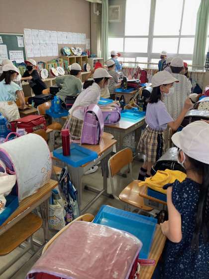 じゃんけんをして、負けたら相手の名前を名乗る遊びです。楽しんでました。