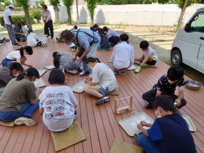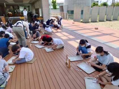 勾玉を作っています。みんな集中しています。一人一人違った、とてもステキな勾玉ができました。