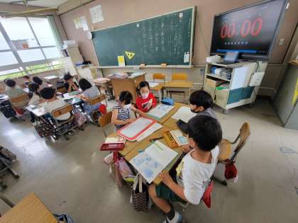 ・同じ部分をもつ漢字を見つけ、話し合っています。