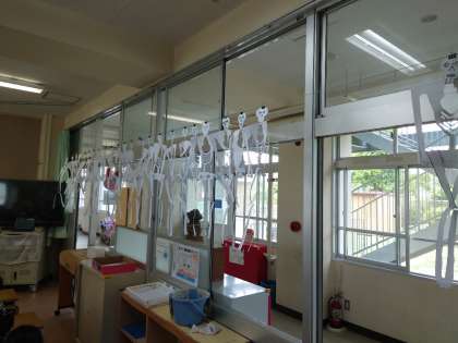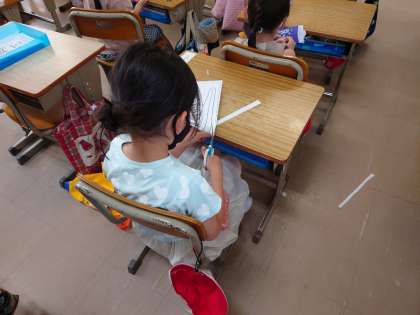 ハサミの使い方の学習です。細かな作業をして,ガイコツを作っていました。きれいに切れていました。