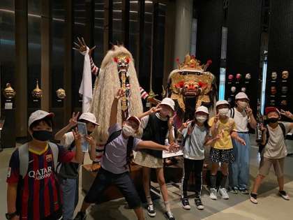 1.5組グループです。 みんぱくで体験、見学をしています。