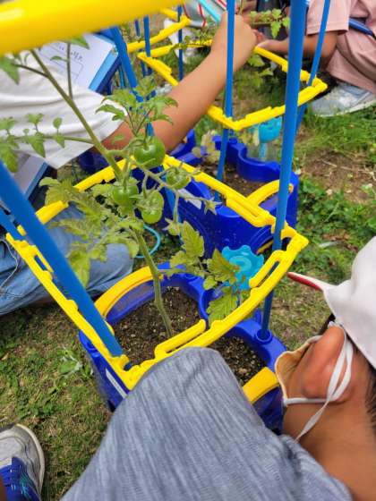 育てている野菜の観察をしています。