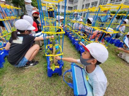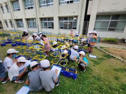 30cmものさしを使ってくきの長さをはかったり、葉っぱを触ったり、よく見ています。