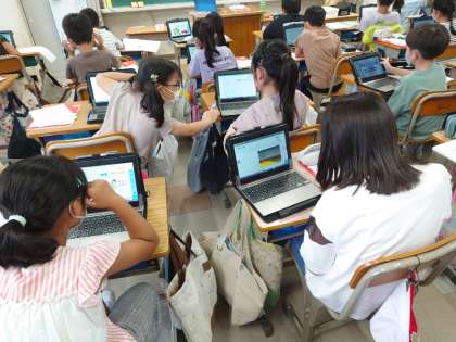 防災ついて授業をしています。パソコンで調べて,上手にまとめていました。