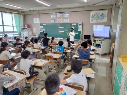 一緒に授業を受けてみたい人を英語で伝えあっています。教科を選んで上手に言えていました。リアクションも素敵でした。