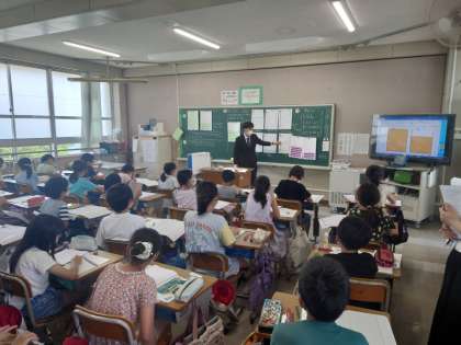今日は,教育実習生の研究授業がありました。小数のについて学習しています。教育実習生との最後の授業にもなるので,先生もみんなも一生懸命がんばりました。思い入れのある授業となりました。
