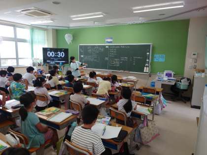 「ゴムをのばす長さをかえるとものを動かすはたらきはどのようにかわるのだろうか。」予想や実験の計画を考えていました。