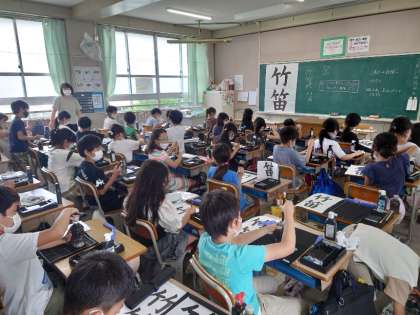 6年生の先生が教えに来てくれています。みんな姿勢も整い,集中していました。筆の洗い方についても丁寧に確認していました。