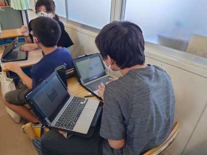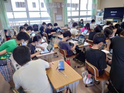来年度入学する児童や保護者に向けて,学校のパンフレットづくりをしています。インタビューをしたり,写真を撮ったり,編集中です。だいぶ仕上がってきているようです。