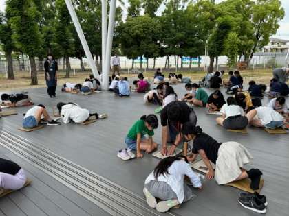 池上曽根弥生学習館に来ています。勾玉作りにチャレンジしました。