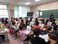 先日,1年生が音読劇を6年生に発表していました。「くじらぐも」のお話を1年生はは...