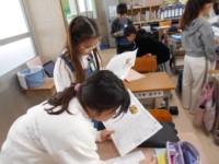 国語で書いた日本の伝統工芸についての説明文を友達と読み合いしています。