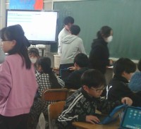 2月20日(金)2組の特別活動では,学級の班の仕事についてタブレットを使ってまと...