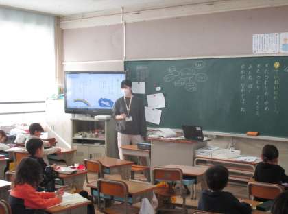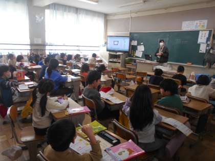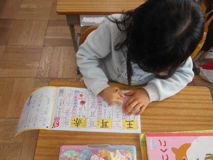 3組の国語です。新出漢字「耳」「王」「口」の学習と、かたつむりのゆめという詩について学習していました。