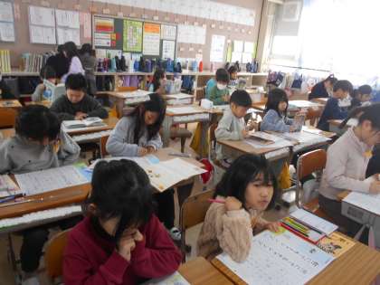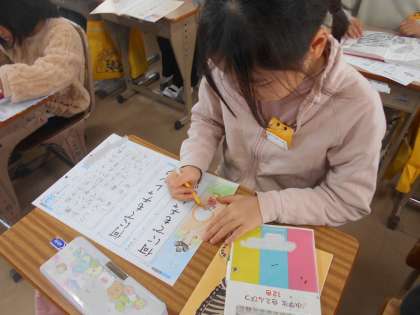 2組の書写の時間です。