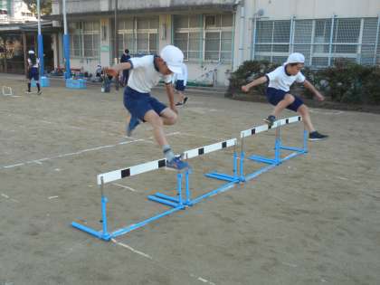 ハードル走に取り組んでいます。