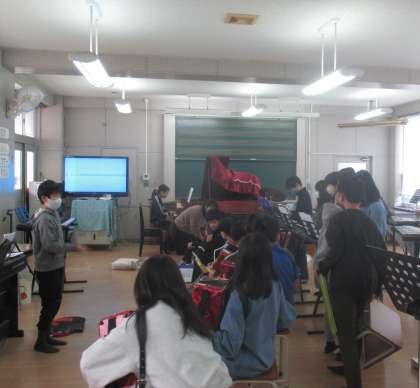 1組の音楽では、ありがとうコンサートに向けて合奏の練習に取り組んでいました。