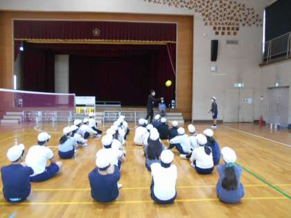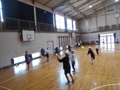体育は体育館でソフトバレーボールに取り組んでいます。