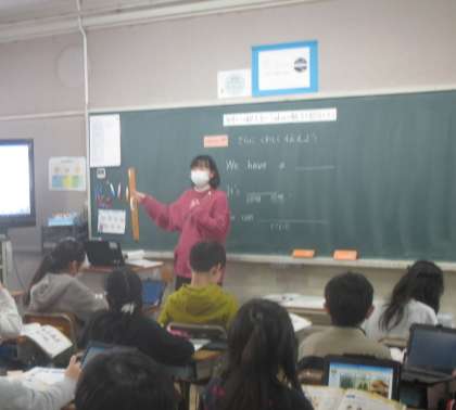 3組の外国語では、海外からの観光客に堺を紹介するテーマのもと、We have〜、You can〜、It is〜についての構文について学習していました。