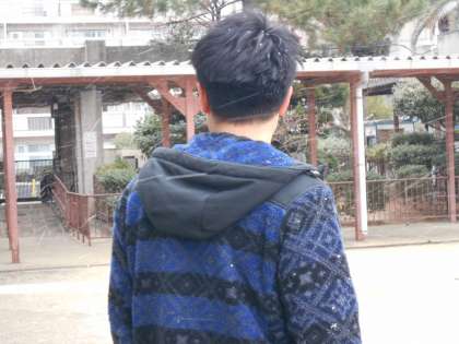 写真に雪が映らないで、先生が被写体になり粉雪が積もっているのが、わかってもらえたらいいなとモデルになってもらいました。(一瞬の時間に先生の髪に積もってます。)