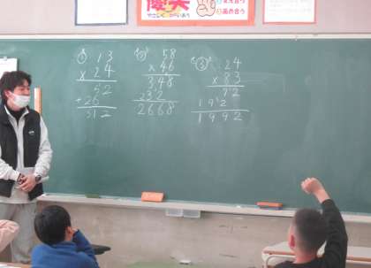 3組の算数では、かけ算の筆算に取り組んでいました。