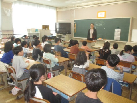 青空学級の先生が、これからこの教室で一緒に過ごすお友だちのことについて、お話をしています。