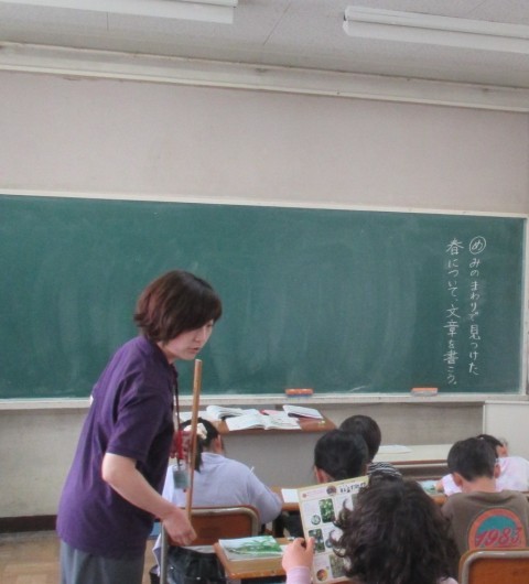 1組の国語では、身の回りで見つけた春について文章を書く学習をしていました。