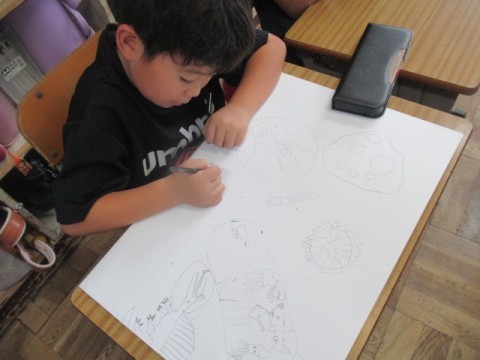 図工では「ふしぎなのりもの」に取り組んでいます。