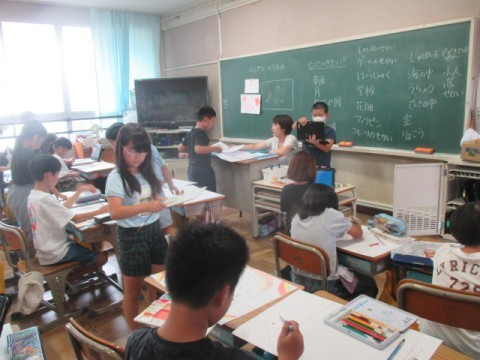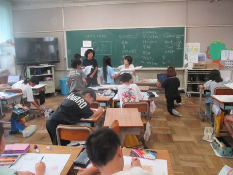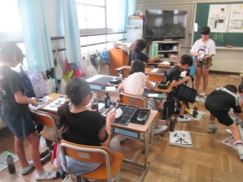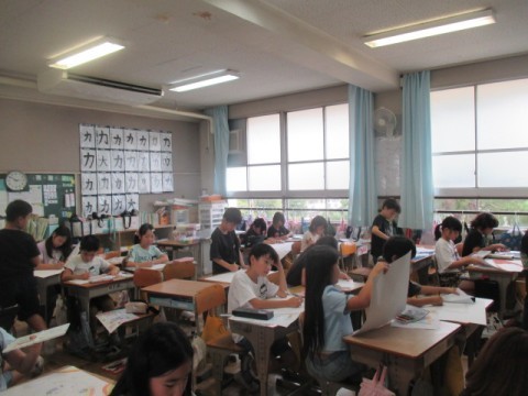 1組の習字では,自分の好きな漢字の文字を練習していました。