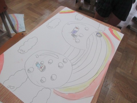 図工では「ふしぎなのりもの」に取り組んでいます。