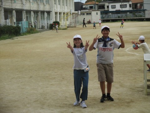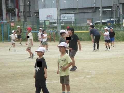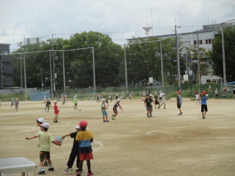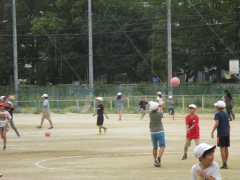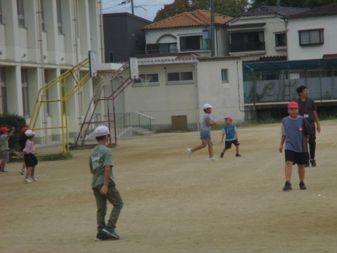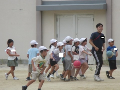 久しぶりに運動場で遊べます。教育実習生の先生や先生も運動場に出て子どもたちと一緒に遊んで楽しそうです。