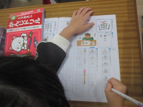 新出漢字「番」「画」を学習し,漢字学習ノートに練習しています。
