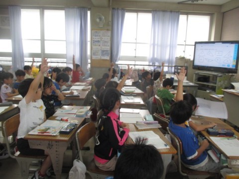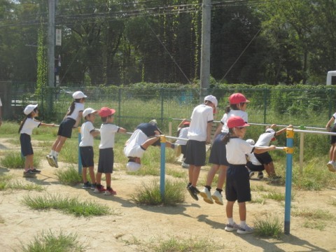 2年 学習のようす 2 公開日 2025/10/01 更新日 2025/10/01 2年生 10月1日(水)2組の算数です。めあては「三角形や四角形をみつけよう」です。体育では「歩走跳」の練習をした後,鉄棒の技に取り組んでいます。2人組になり,「こうもり」になって,じゃんけんをしています。 +7