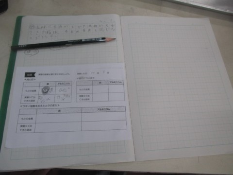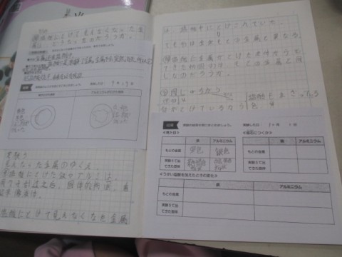1組の理科「水溶液の性質・みえなくなる金属のゆくえ」の学習です。
