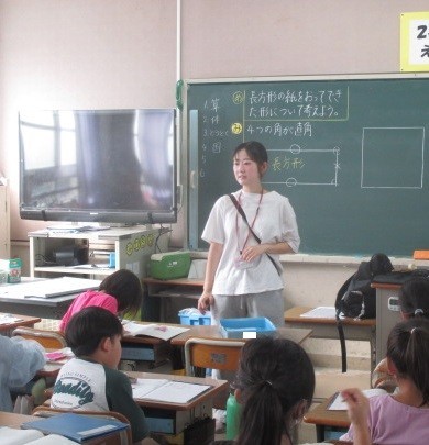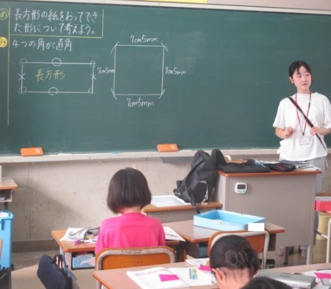 2組の算数では,長方形の形を折ってできた形について学習していました。