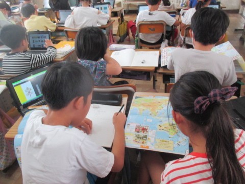4年 学習のようす 1 公開日 2025/10/09 更新日 2025/10/09 4年生 10月9日(木)1組の社会の学習のようすです。今日のめあては「世界の国しらべをしよう」です。イタリアやスペインなど興味のある国を決め,タブレットや地図帳を使って調べています。 +5