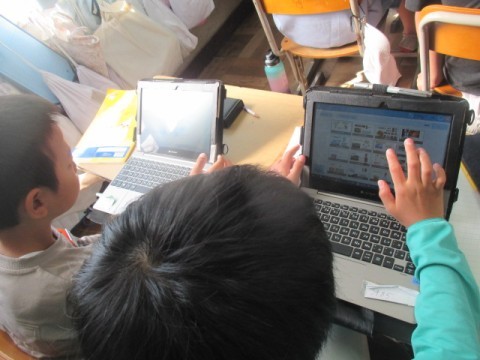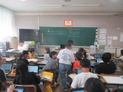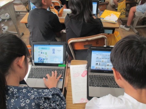 めあては「大阪府の伝統工芸品についてしらべよう」です。タブレットを使い,調べたことを発表ノートにまとめていました。