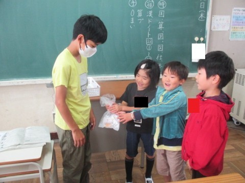 先生が「6年生にプレゼントを届けます。よかったら来てください。」と誘ってくれたのでついていきました。