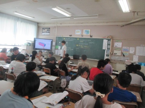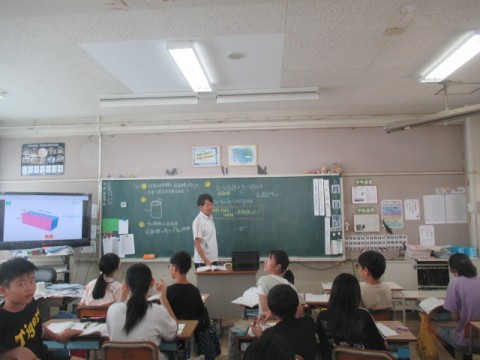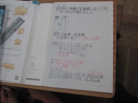 今日のめあては,「円柱の体積も「底面×高さ」をつかって求められるかたしかめよう」です。