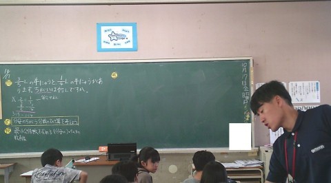 2組の算数では,分母の違う分数のひき算について学習していました。
