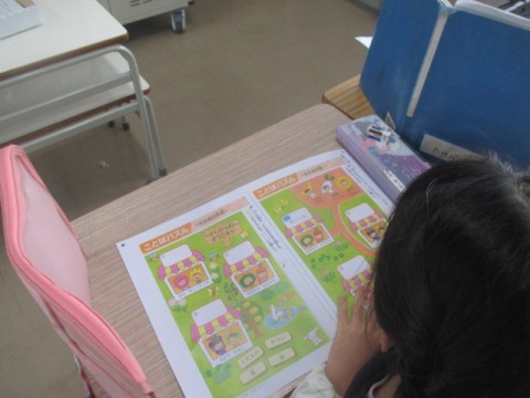 2組の国語では,「お手紙」のテストをしていました。