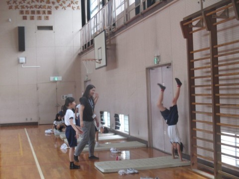 4年 学習のようす 3 公開日 2025/10/20 更新日 2025/10/20 4年生 10月20日(月) 3組の体育です。体育館で「三点倒立」や「倒立」に挑戦しています。算数は,少人数授業,少人数教室のようすです。 +7