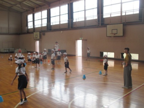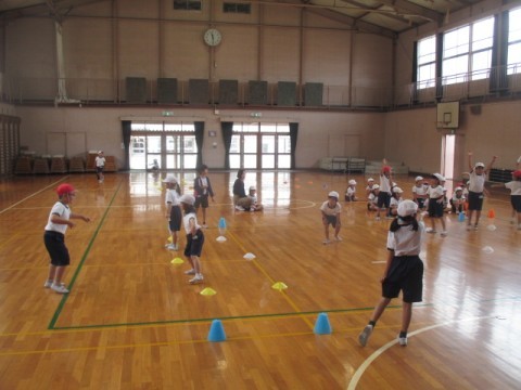 体育は,体育館で「宝とりおに」に取り組んでいます。