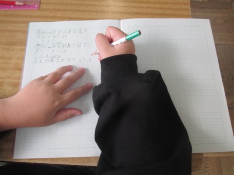 そのあと,「どちらが長い?」の問題に取り組みます。