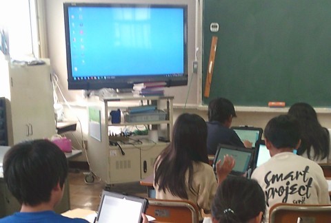 1組の外国語では,いろいろな構文を使って文章を作っていました。
