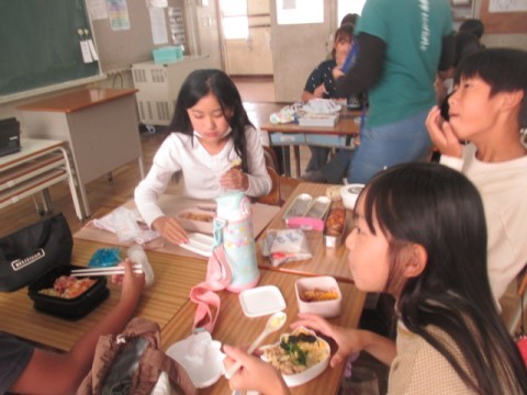 みな,おいしそうに作ってもらったお弁当をいただいていました。