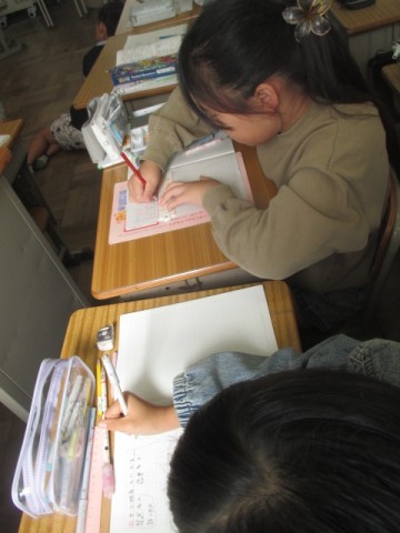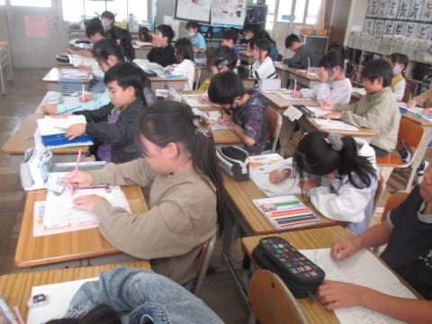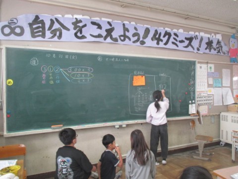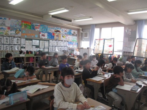 今日はいつも使っているタブレットが調子悪くて「発表に使えない」と先生も子どもたちもがっかりしていました。アナログ??で説明していました。