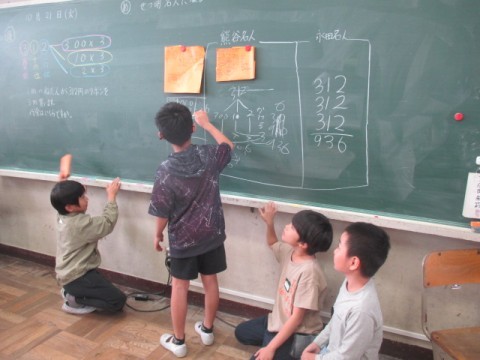 312の説明をしてから,312×3のひっ算のしかたを説明しています。