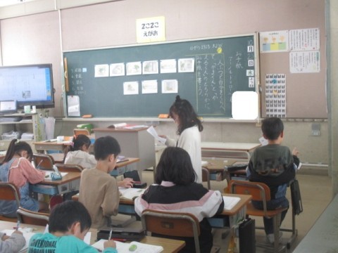 国語「お手紙」では,めあて「人ぶつと自分を比べて「がまくん」と「かえるくん」のどちらかにお手紙を書こう」に取り組んでいます。